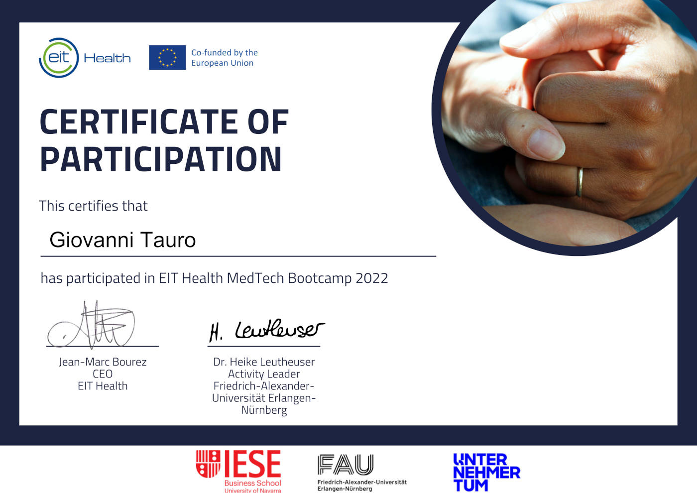 One of the ten European projects selected by the EIT Health MedTech BootCamp 2022.